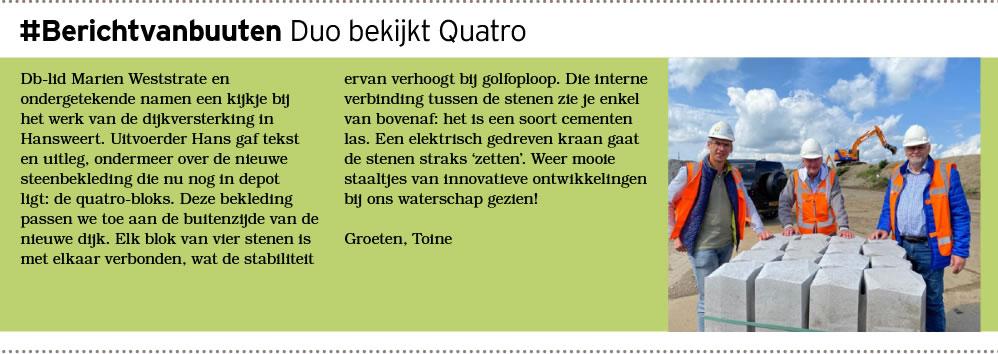 Uitvoerder Hans gaf tekst en uitleg, ondermeer over de nieuwe steenbekleding die nu nog in depot ligt: de quatro-bloks.